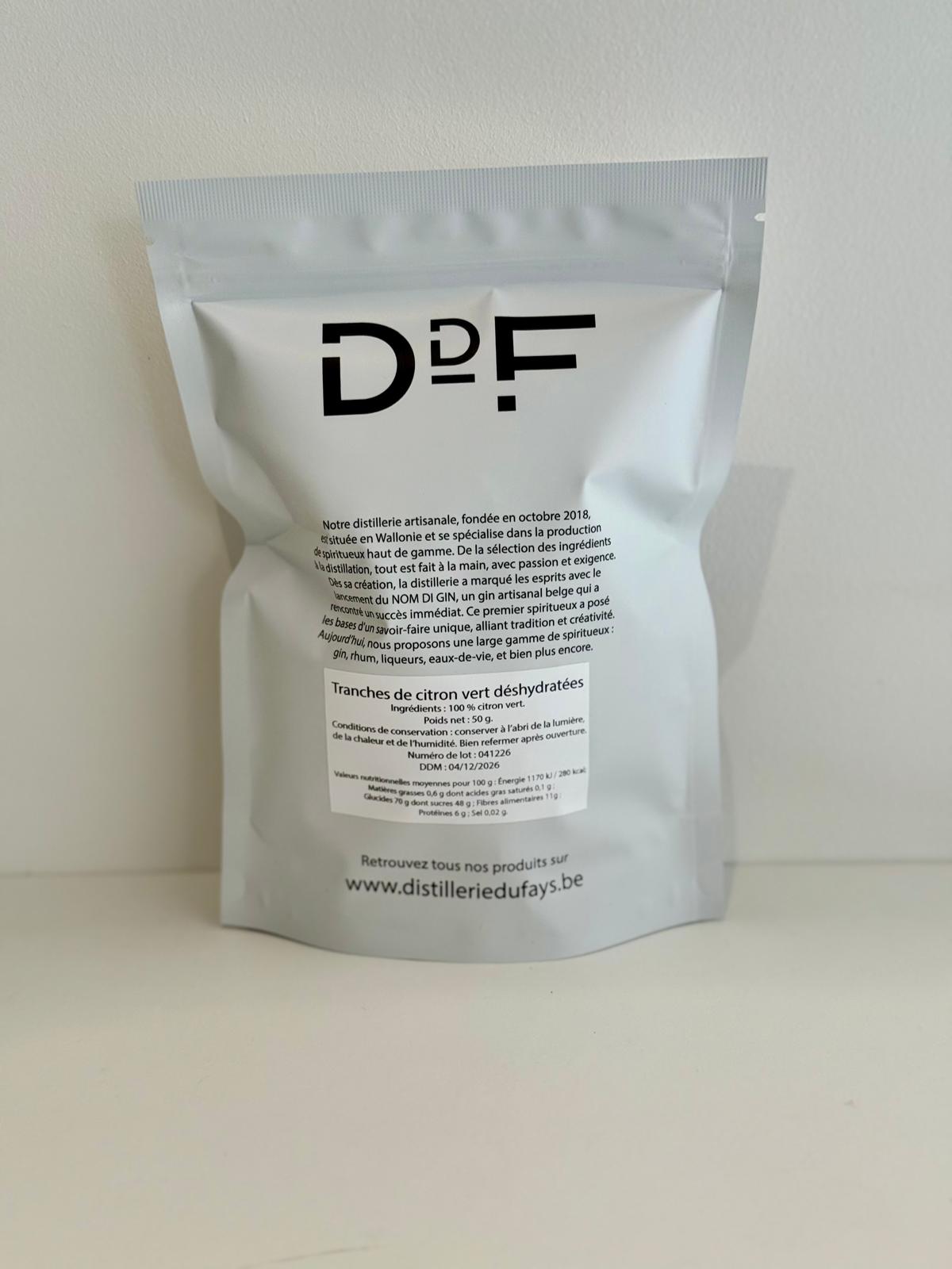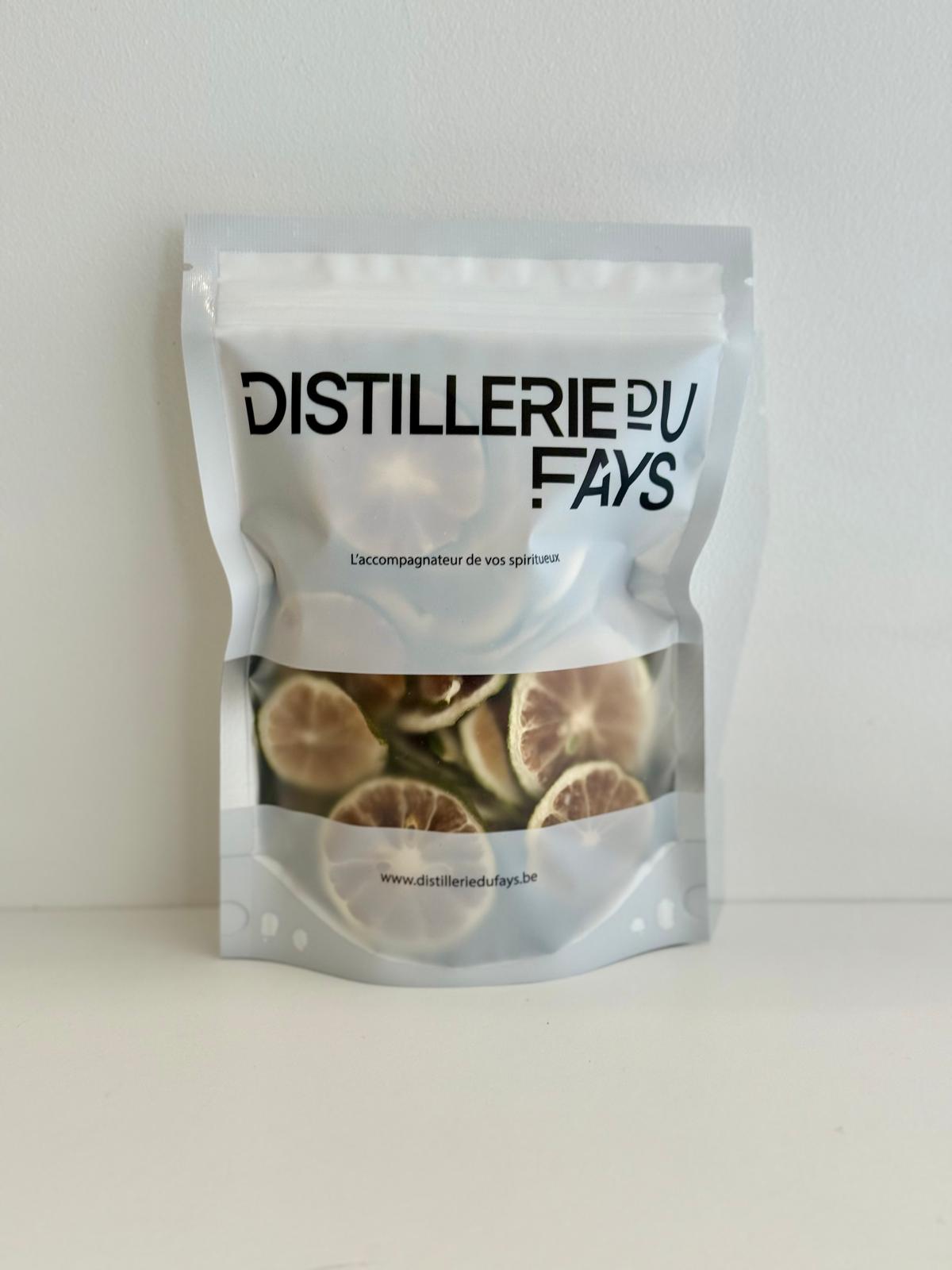 Avec ces tranches de citron vert déshydraté, transformez chaque verre en cocktail de bar, directement chez vous, signé Distillerie du Fays.